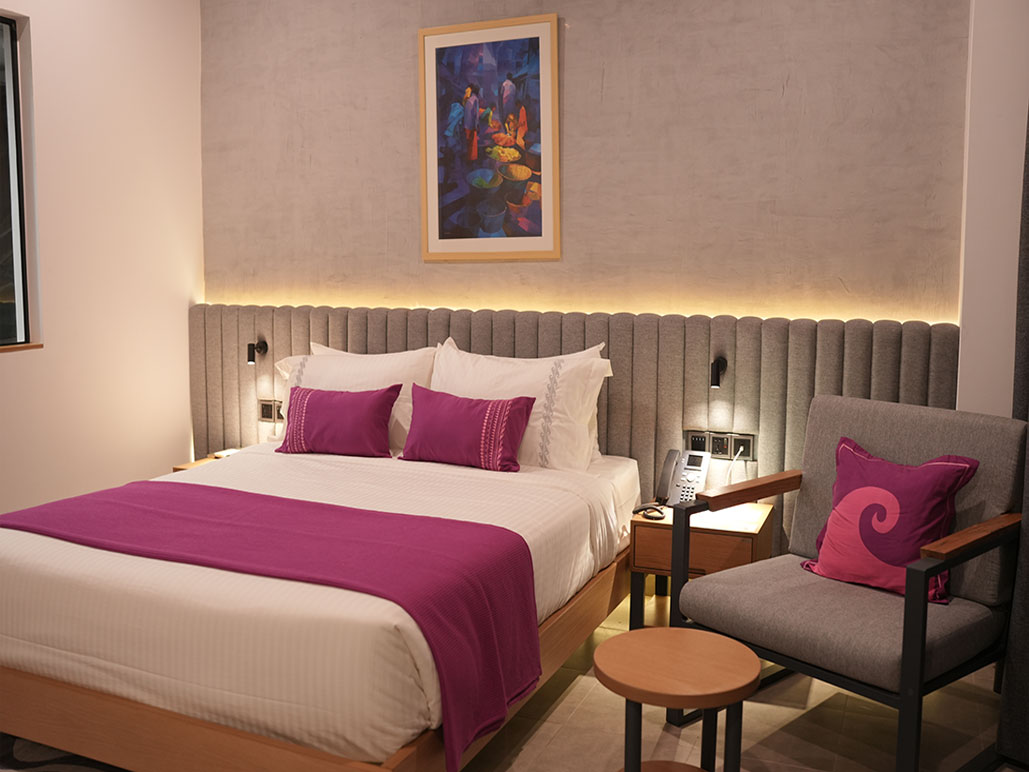Unwind in a thoughtfully designed Deluxe Room at Mana Bay Resort, where comfort meets calm, these rooms are designed for relaxation after a day of water park adventures and leisure experiences. With modern interiors, warm tones, and functional space, the Deluxe Room offers a comfortable stay for couples, families, and corporate guests alike.